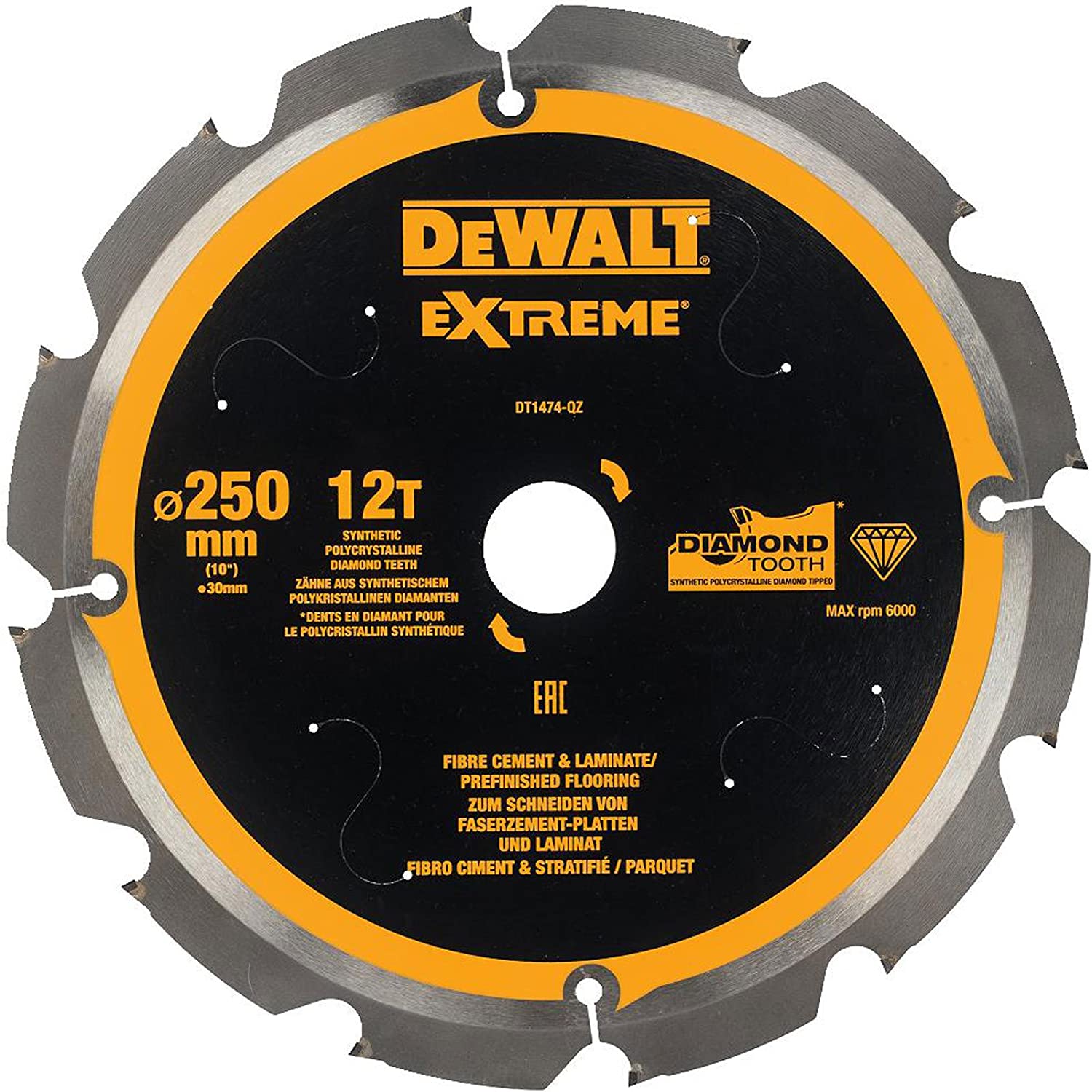Griešanas disks šķiedru cementam DeWalt DT1474-QZ; 250x30 mm; 12°