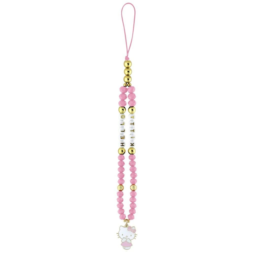 The strap is made from high-quality beads, some of which feature an adorable Hello Kitty inscription. At the end of the strap is the Hello Kitty character in a cute dress, adding exceptional charm.