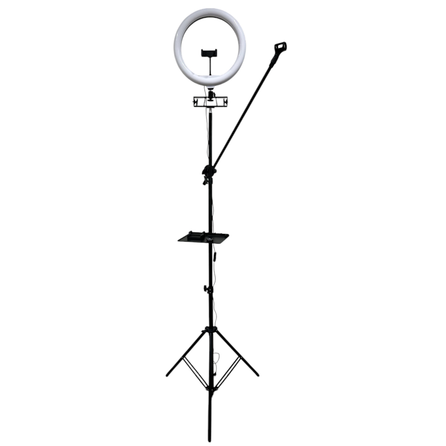 iLike S12 LED Selfie 31cm Ring Light Lamp + Tripod Stand 2.1m + Shelf & 3x phone / Mic Holder Black