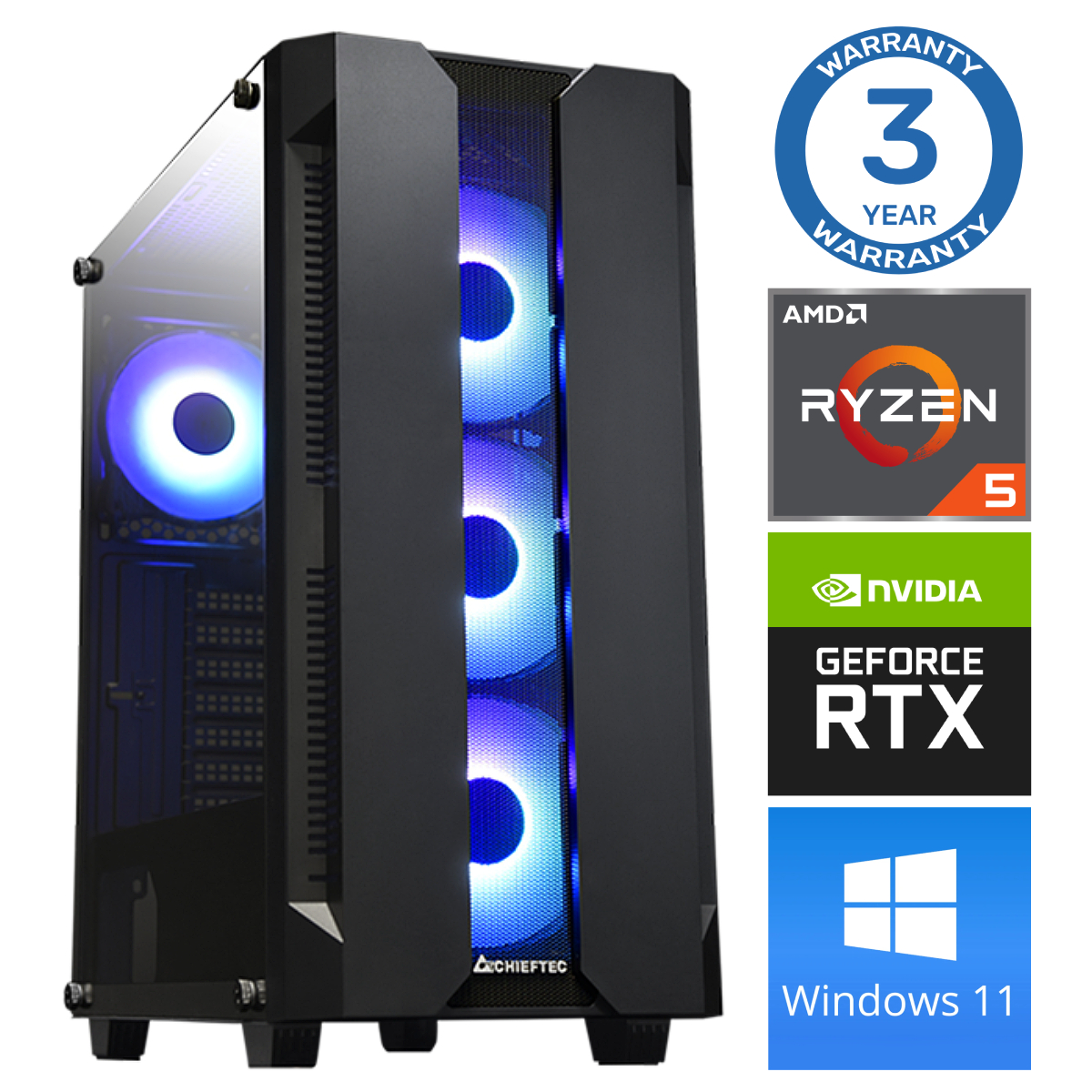 INTOP Ryzen 5 3600 16GB 250SSD M.2 NVME RTX3050 6GB WIN11