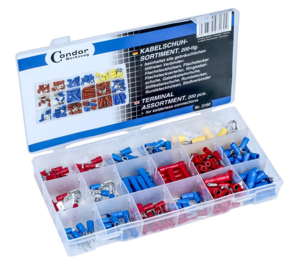 Kabeļu uzgaļu pievienošanas komplekts Condor Werkzeug C3160; 200 gab.