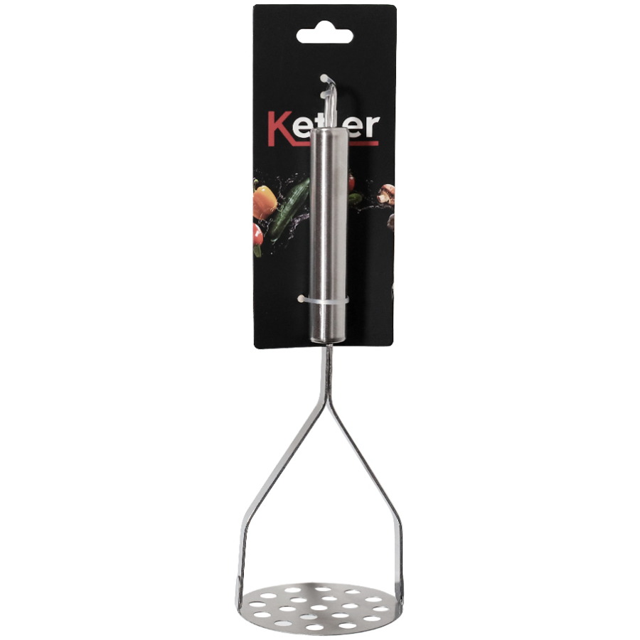 Nerūsējošā tērauda kartupeļu stampa Ketler ir izturīgs un praktisks virtuves rīks, kas nodrošina vienmērīgu kartupeļu biezeņa vai citu vārītu dārzeņu sasmalcināšanu. Ergonomiskais rokturis ar ērtu cilpu pakarināšanai nodrošina stabilitāti un kontroli, savukārt perforētā pamatne veicina ātru un efektīvu produktu apstrādi. Izgatavota no nerūsējošā tērauda, stampa ir viegli tīrāma un piemērota intensīvai lietošanai. Kompaktais dizains (25 x 8 x 8 cm) ļauj to ērti uzglabāt jebkurā virtuvē.