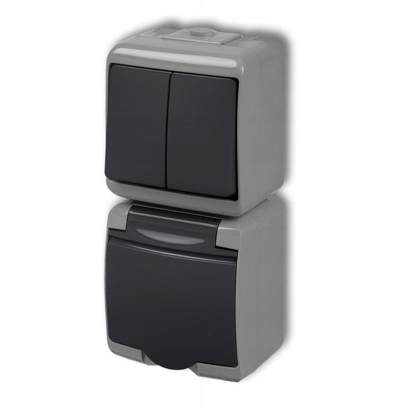 cznik wiecznikowy z gniazdem hermetycznym Karlik Junior 30WGHP-2 natynkowy z uziemieniem IP54 MIX pionowy klapka grafitowa popielaty/grafitowy
