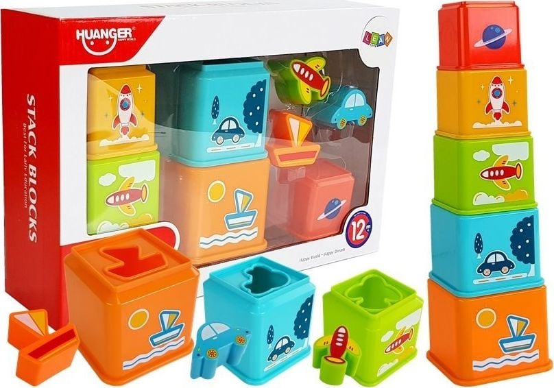 Lean Sport Piramidka kubeczki kwadrat z obrazkami pojazdów
