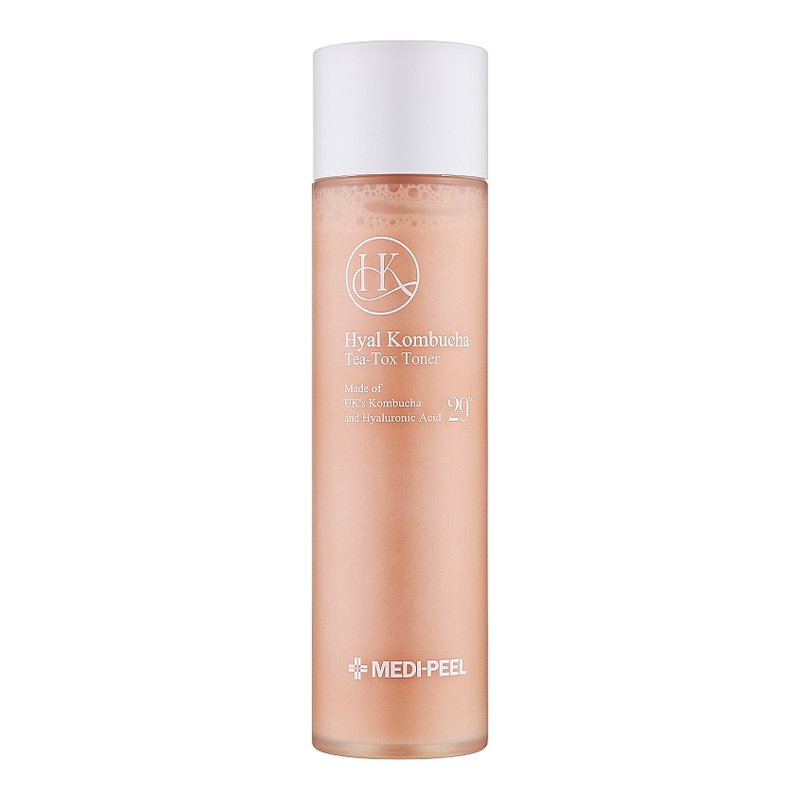 [MEDI-PEEL] Hyal Kombucha Tea-Tox Toner, 150 ml Toner with kombucha and hyaluronic acid intensely moisturizes, increases skin elasticity and firmness, fights dryness, reduces sensitivity and relieves redness, softens rough skin and normalizes sebum production. A two-phase product in a 7:3 ratio consists of kombucha essence and hyaluronic emulsion of milky consistency, which when mixed form a delicate silky texture. Kombucha, which makes up 70% of the toner, is produced by the world famous English company Ahmad Tea from high-quality black tea, fermented at 29° for 336 hours. The emulsion, which makes up the remaining 30%, contains 8 types of hyaluronic acid and liposomes with 5 types of ceramides.