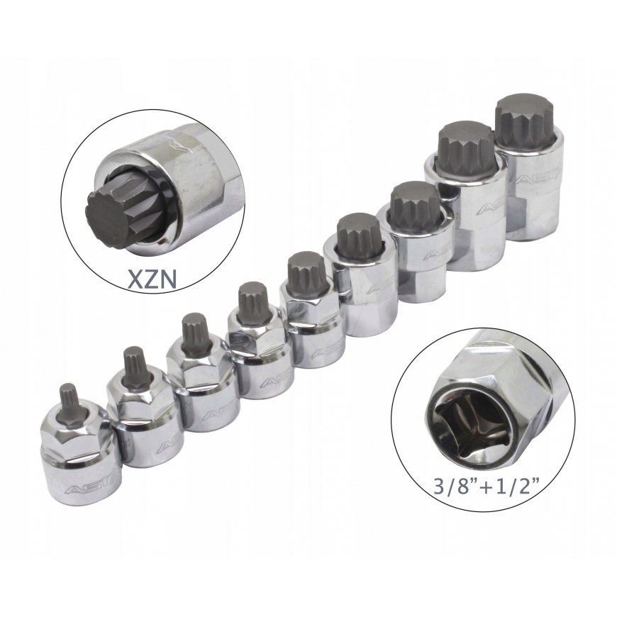 Muciņu ar uzgaļiem komplekts ASTA A-M9XZN; 1/2''; 3/8''; 9 gab.