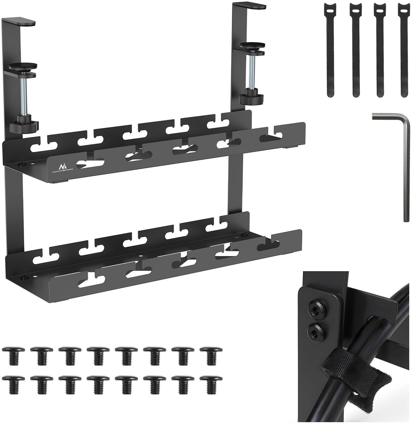 Organizer podbiurkowy na kable Maclean, max. obcienie 5kg, 2 poziomy, czarny, MC-104 B