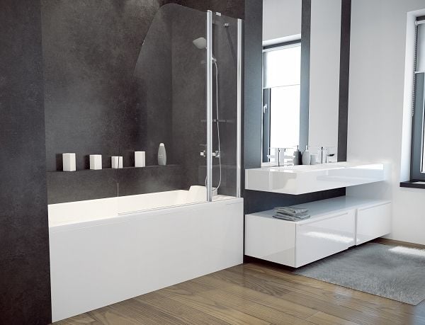 Parawan nawannowy Besco AVIS 2-czciowy szko przejrzyste, profil chrom (PAV-2S)