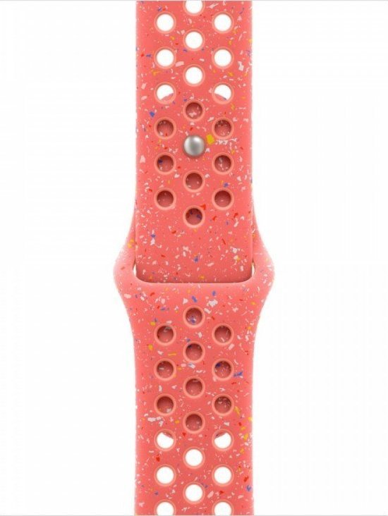 Pasek sportowy Nike jest mocny i wytrzymały, a jednocześnie zaskakująco miękki. Jego przewiewność zwiększają specjalnie wytłoczone otwory. Kolorowe płatki ułożone w losowe wzory nadają każdemu paskowi niepowtarzalny wygląd. Gładki, zwarty materiał jest przyjemny w dotyku i elegancko oplata nadgarstek. A napa w nowym aluminiowym zapięciu z napą i szlufką ma teraz matowe wykończenie.