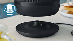 Pārnēsāt bezvada tējkannu ir tikpat vienkārši kā novietot to atpakaļ uz pamatnes no jebkura leņķa, pateicoties tās 360° grozāmajai pamatnei.