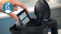 Tējkannas vāka atvēršana uzpildīšanai ir vienkārša un intuitīva — tam paredzētā poga ērti novietota uz roktura. Neatkarīgi no tā, vai ērtāk darboties ar labo vai ar kreiso roku, vienkārši pacel vāku un turi kannu zem krāna, lai to uzpildītu.