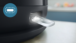 Izgaismotais lodziņš ir pievilcīgs un moderns elements, kas ļauj uzpildīt tieši nepieciešamo ūdens daudzumu. Ietaupi laiku, ūdeni un enerģiju katrā vārīšanas reizē!