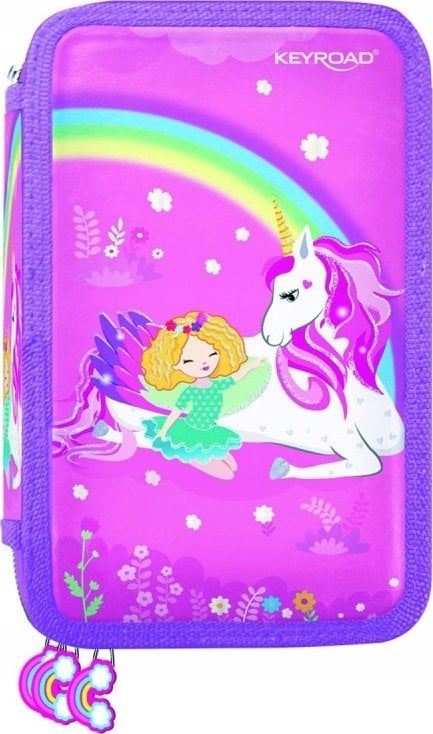 Piórnik Keyroad Piórnik KEYROAD, wyposaony, 3-komorowy, 52 elementy, 20,5x13,5x6 cm, mix kolorów