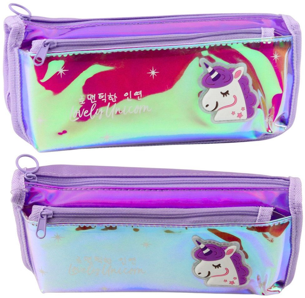 Piórnik Lean Piórnik Przybornik Szkolny Z Jednorocem Holograficzny Fioletowy 21,5x9 cm