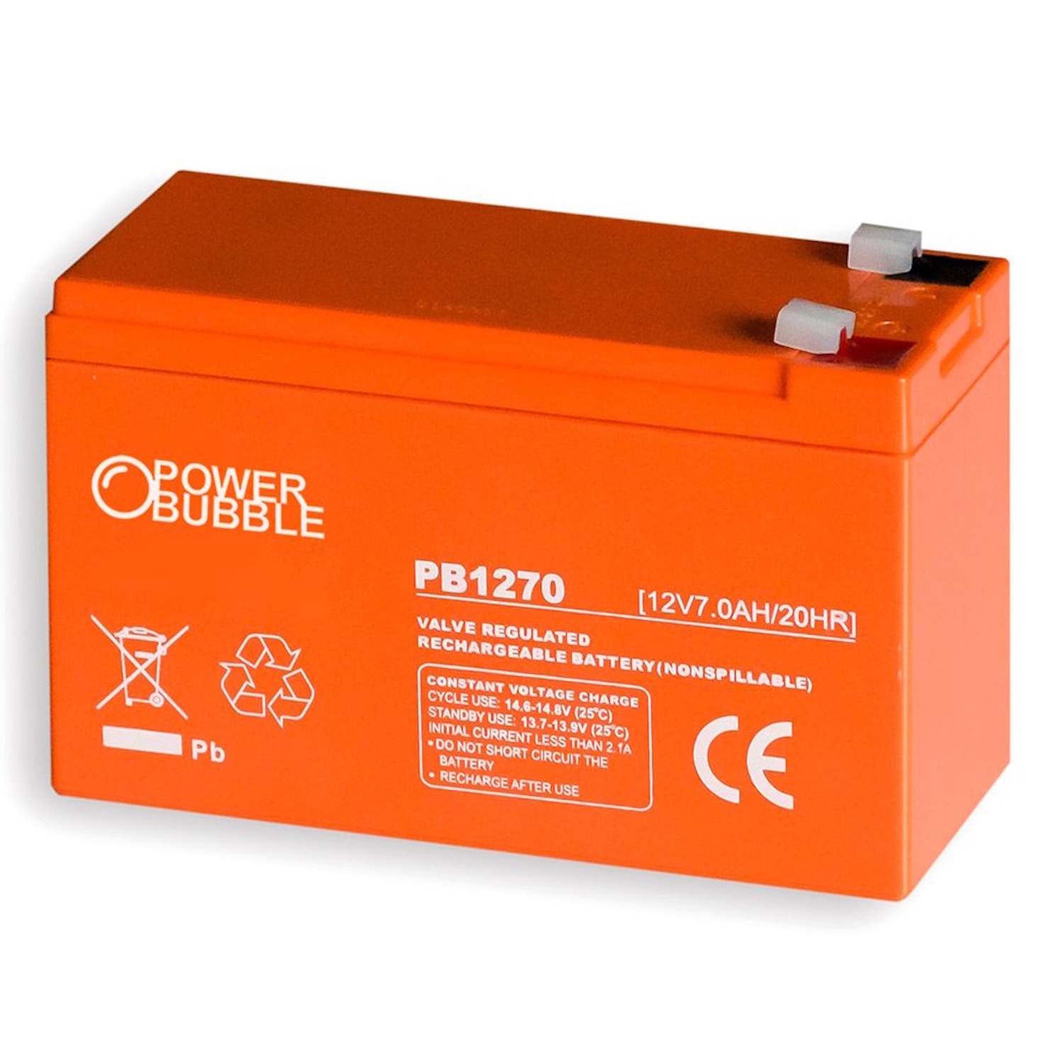 Power Bubble PB1207 Li-Ion battery (AGM) 12V 7Ah (151 x 65 x 100 mm) 1.95kg Orange