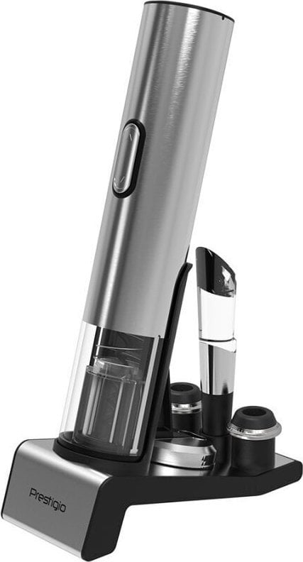 | Prestigio Garda, smart wine opener, simple operation with 2 buttons, aerator, vacuum stopper preserver, foil cutter, opens up to 50 bottles wihout recharging, premium design, 500mAh battery, Dimensions D 17mm* H 290mm* W100 mm, silver color. |