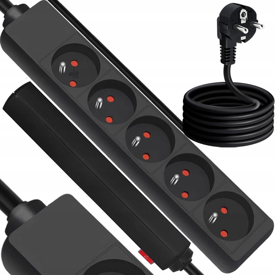 Przeduacz sieciowy 5 gniazd z uziemieniem 1,5m czarny