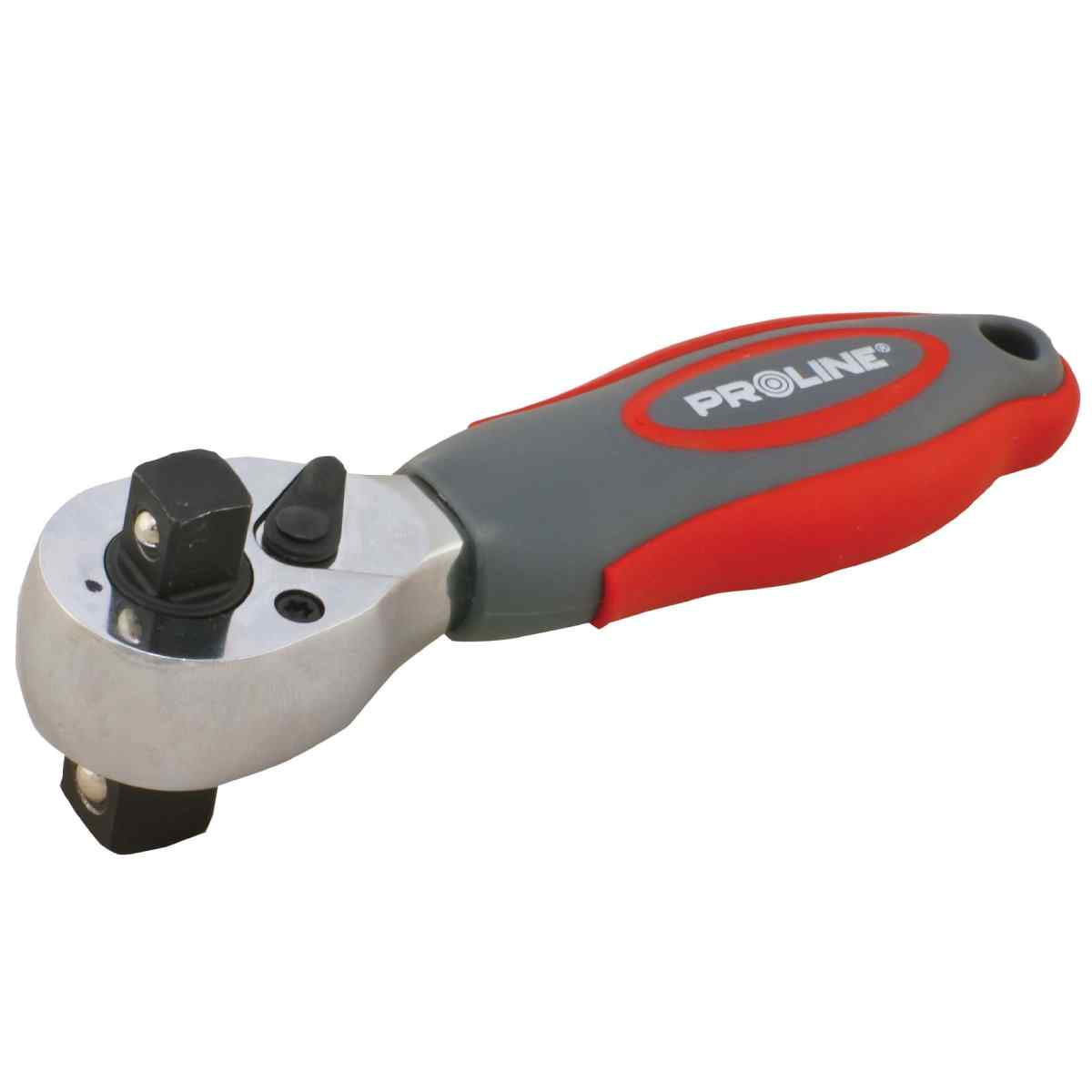 Divpusēja atslēga izgatavota no hroma vanādija tērauda. Rokturis ar izliektu vāciņu, kas izgatavots no divkomponentu materiāla ar iestrādātiem gumijas elementiem. 72 zobi, garums 135 mm, izmērs 1/2" un 3/8".