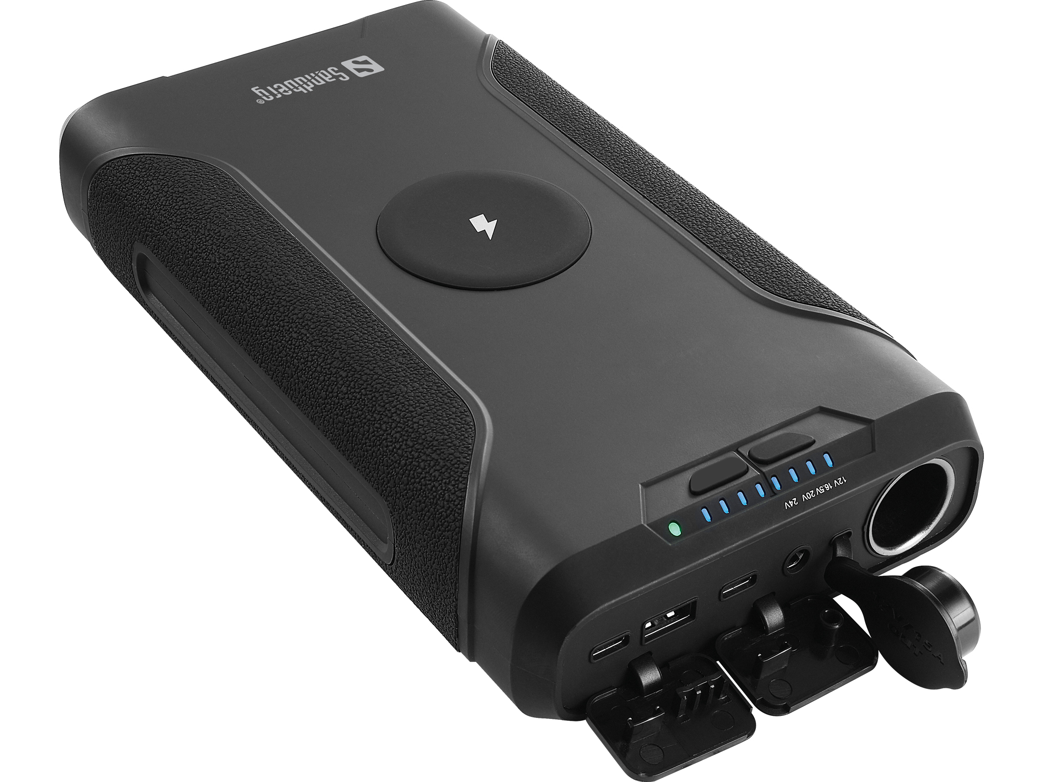 Sandberg Survivor Powerbank 7in1 72000 — это универсальная зарядная станция, которая подходит практически для всех устройств. Аккумулятора огромной емкости 72000 мАч достаточно, чтобы перезаряжать смартфон каждый день в течение почти одного месяца. Внешний аккумулятор оснащен множеством разъемов для зарядки различных устройств: