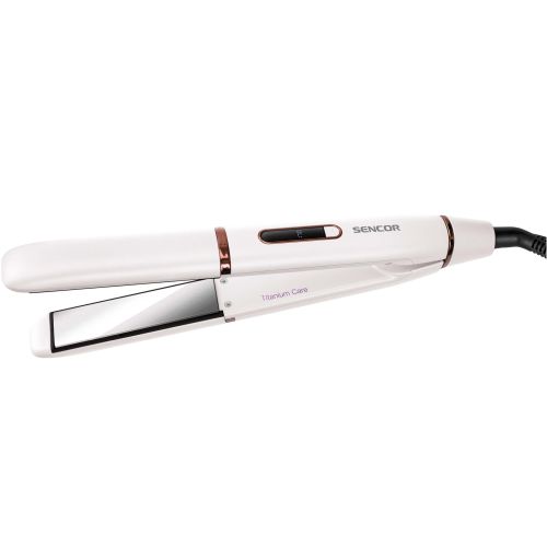 5 temperature settings 150/170/190/220/230 °C Titanium surface of ironing plates for maximum comfort and elegant results Slim Design ideal for straightening hair and styling locks Open and close safety lock POWER CORD swivels 360 ° to prevent twisting and tangling power cord covered with protective textile for maximum safety 180-cm long power cord for maximum comfort