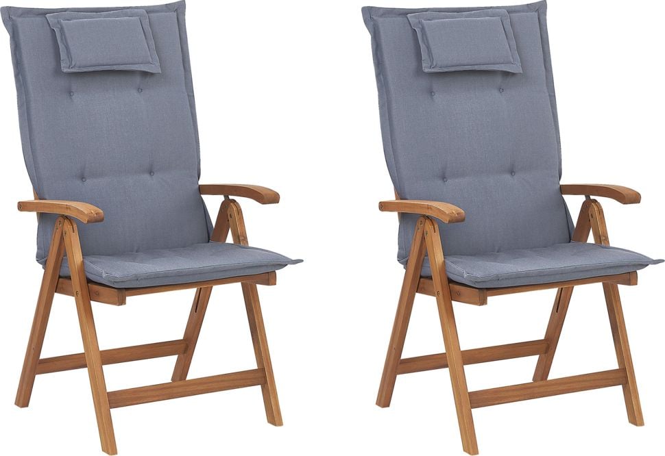 Shumee Zestaw 2 krzese ogrodowych drewnianych z niebieskimi poduszkami JAVA