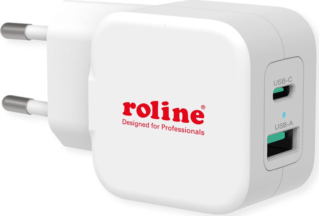 Sienas lādētājs USB TypeA+TypeC, 20W, Roline