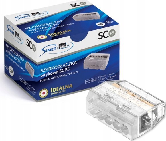 Simet Szybkozczka wciskana do drutów 5x 0,75-4mm2 24A Simet Ideal SCP5 88000002S transparentna/biaa