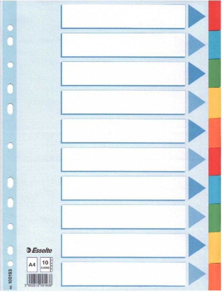 Esselte Zakadki indeksujce 10 kart 5 kolorów KARTA OPISOWA (100193)