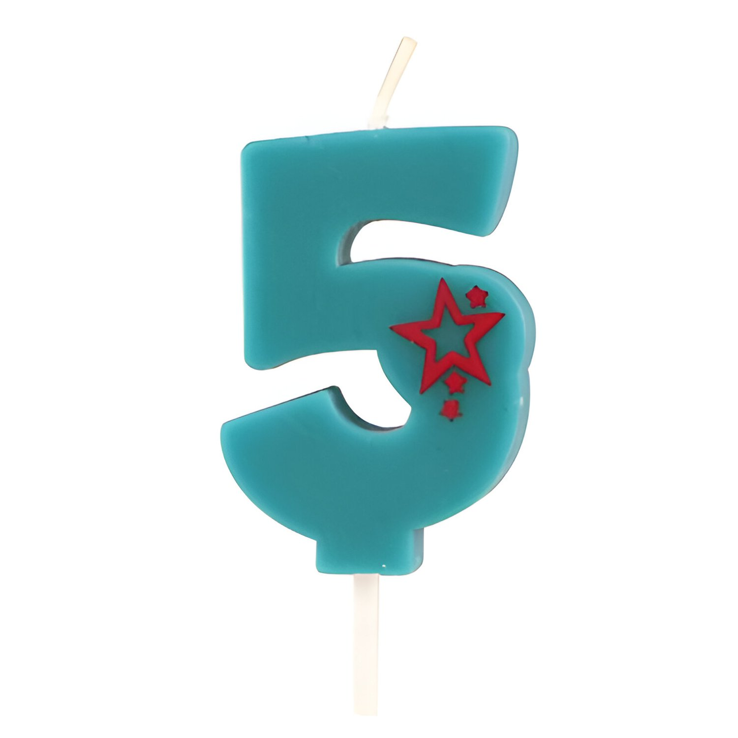 Zila dzimšanas dienas svecīte 5. Izgatavota no parafīna. Svecītes augstums ar kātu 6.8 cm, bez kāta 4.5 cm. Degšanas ilgums aptuveni 6 minūtes.