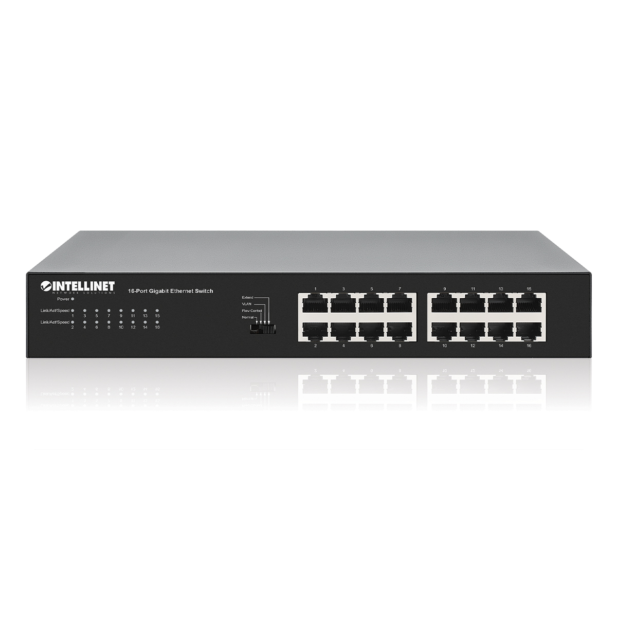 | Intellinet 561815. Basic switching RJ-45 Ethernet ports type: Gigabit Ethernet (10/100/1000), Basic switching RJ-45 Ethernet ports quantity: 16. MAC address table: 8192 entries. Networking standards: IEEE 802.3, IEEE 802.3ab, IEEE 802.3az, IEEE 802.3u, IEEE 802.3x. Rack mounting |