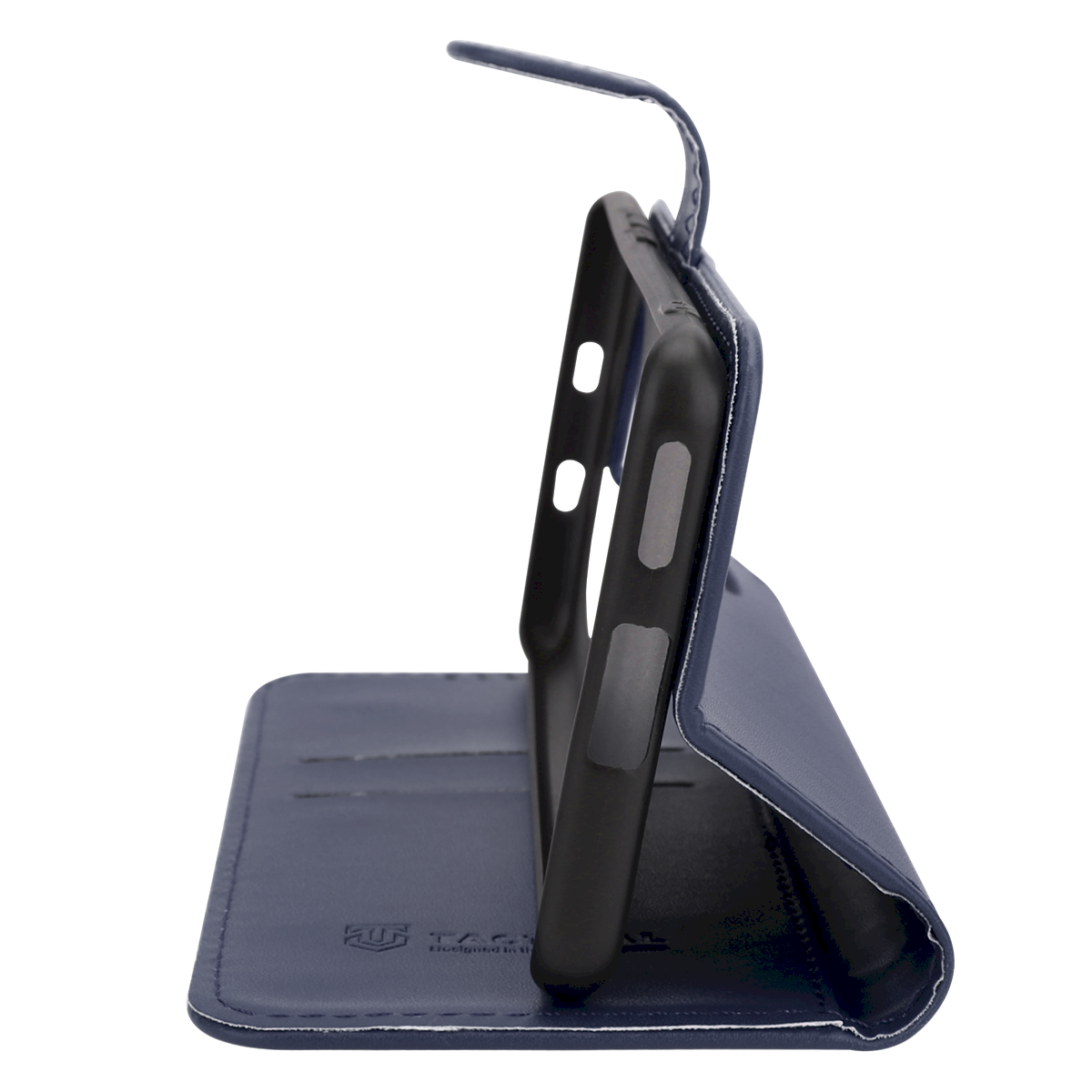 The inner tray for the phone is made of solid plastic and has a cutout for the camera.
