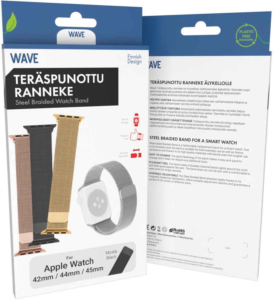 Wave steel braided strap, Apple Watch 42 / 44 / 45 / 46 / 49 mm, black