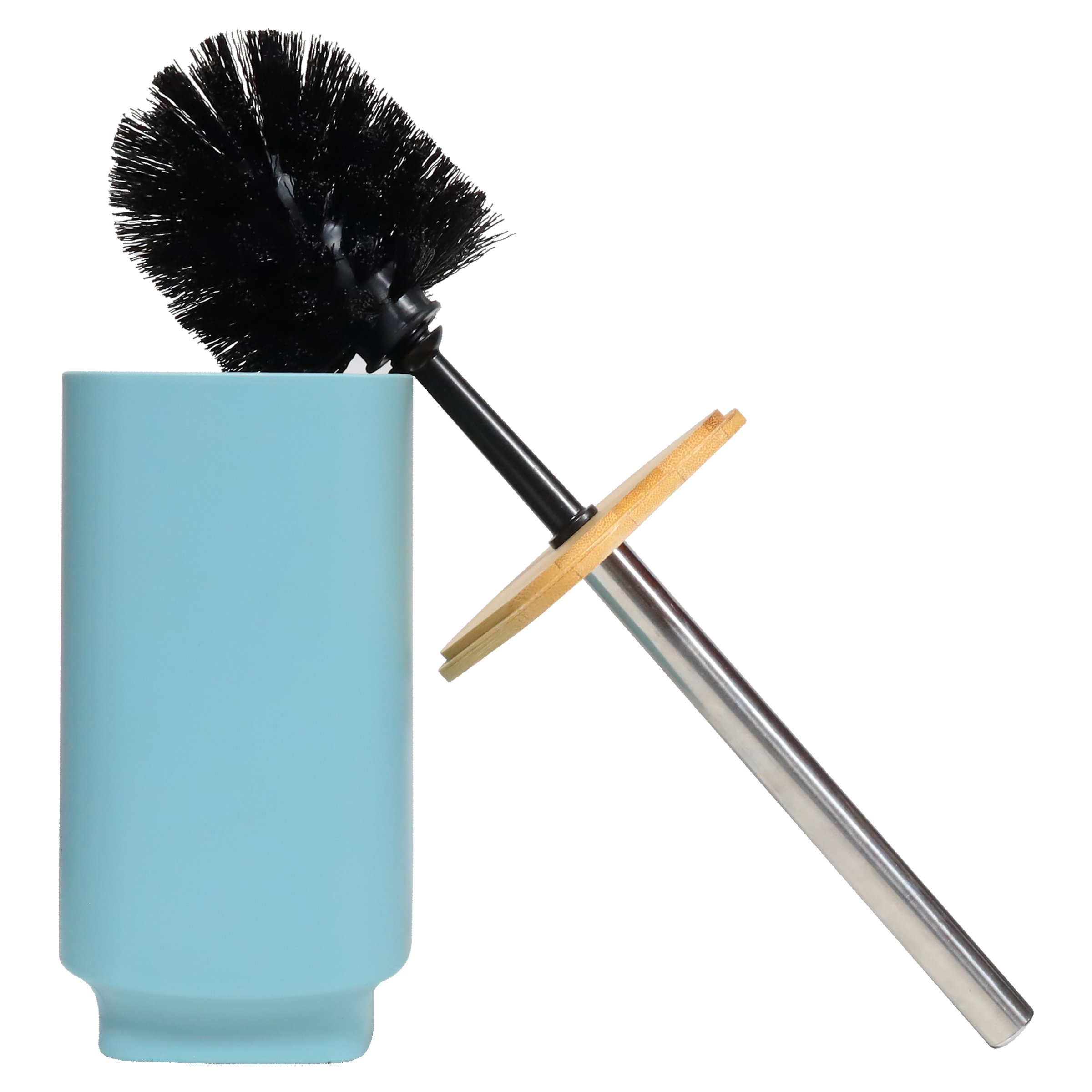 Brīvi novietojama tualetes birste ar paliktni un vāku. Paliktnis izgatavots no izturīgas ABS plastmasas, vāks no bambusa.