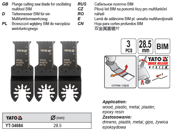 Yato Brzeszczot wgbny BIM do narzdzia wielofunkcyjnego 28,5mm 3szt. (YT-34684)