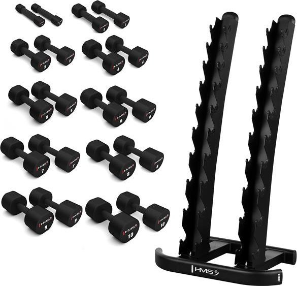 ZESTAW HANTLI POLIURETANOWYCH HPT 2 x 1 - 10 KG (110 KG) + STOJAK STR37 HMS